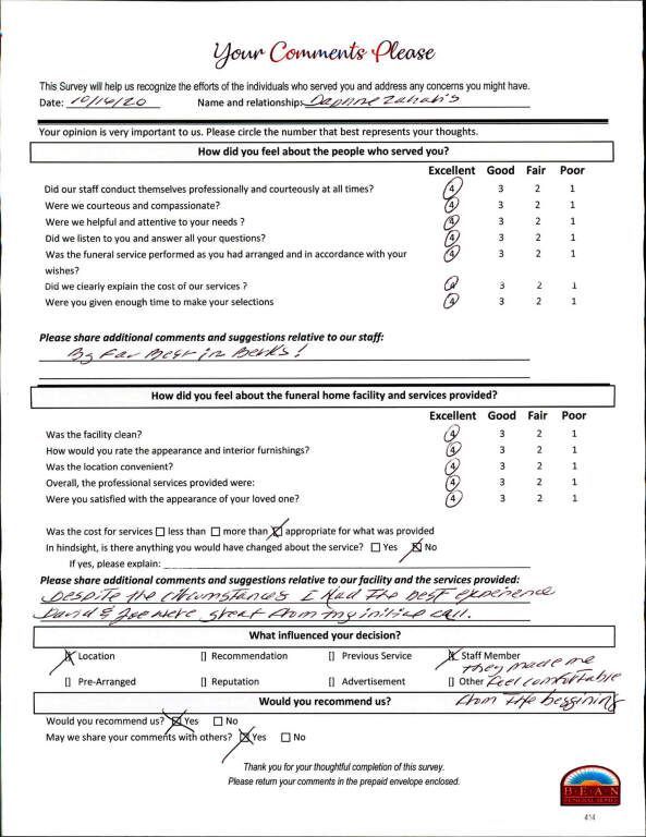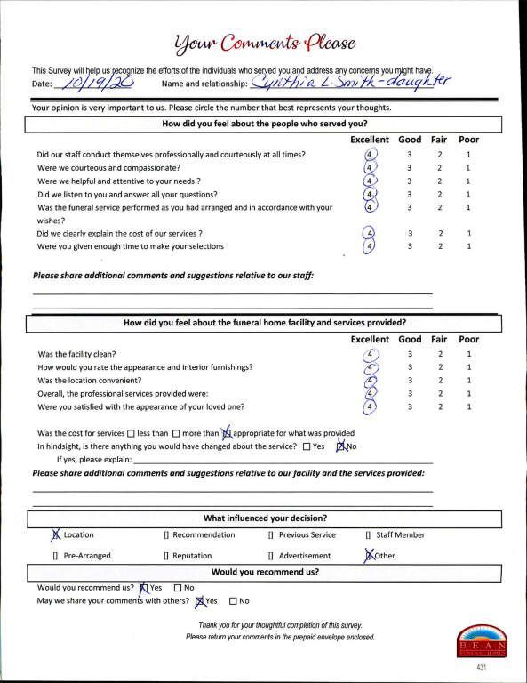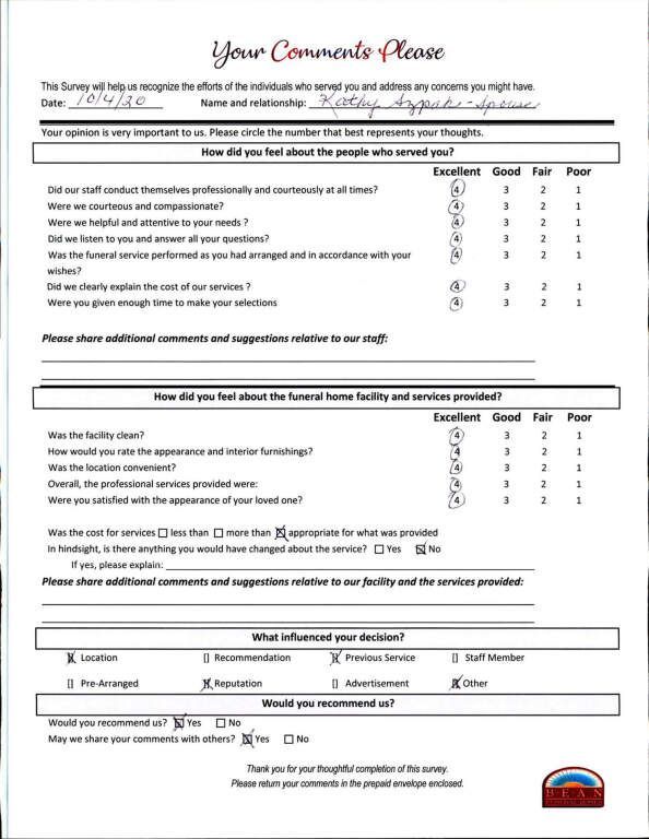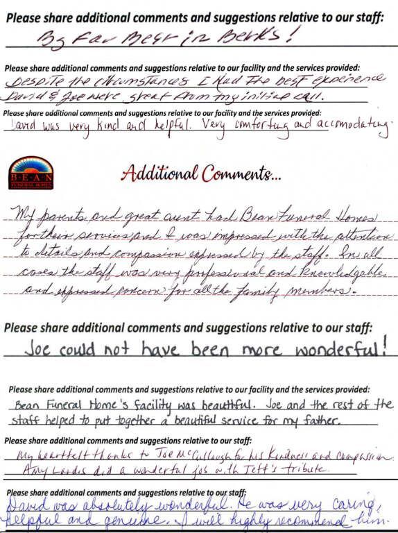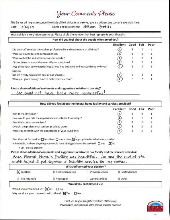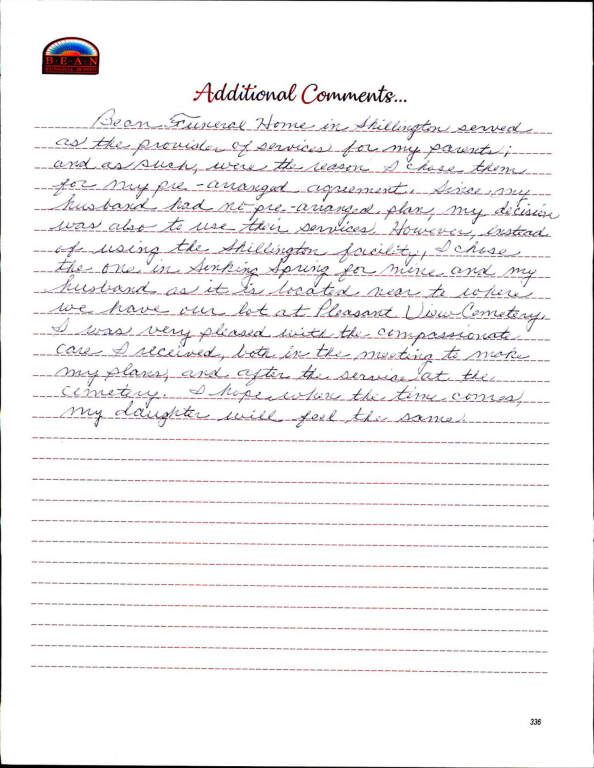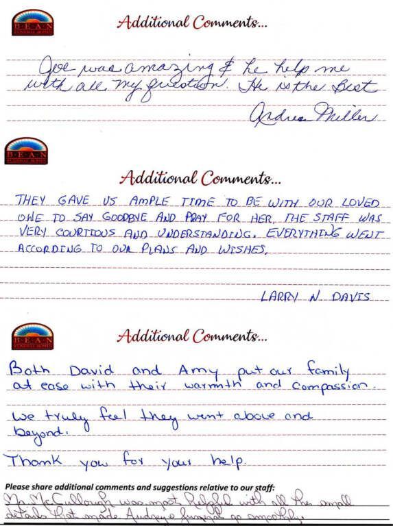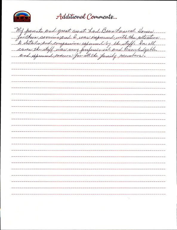 If we have served your family and you would like to share your thoughts, please write your own testimonial.