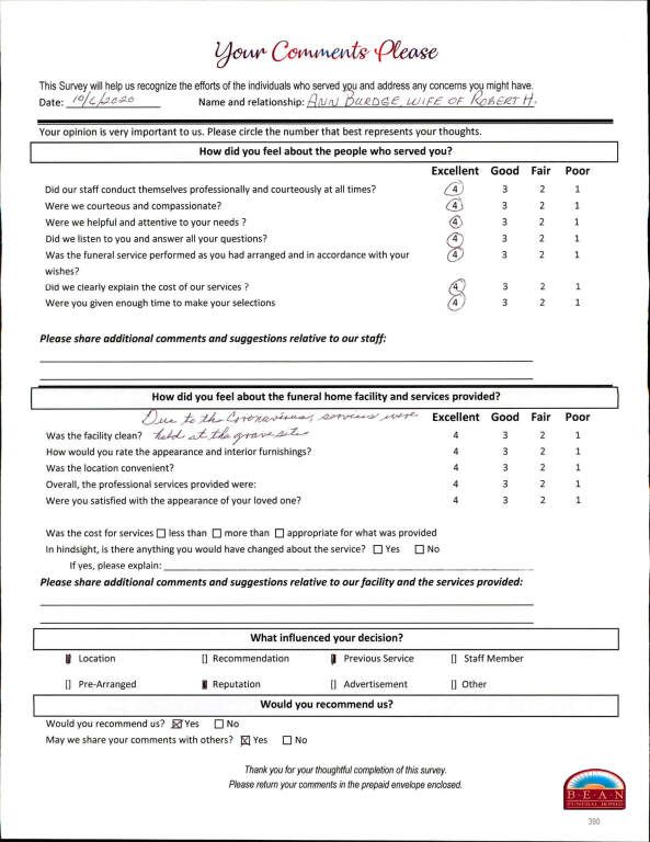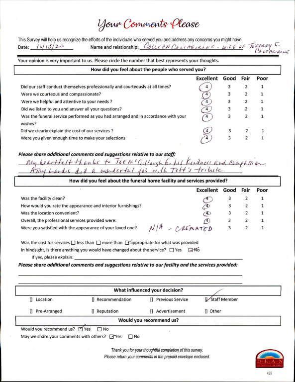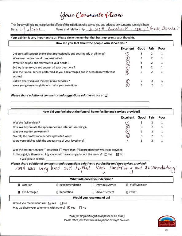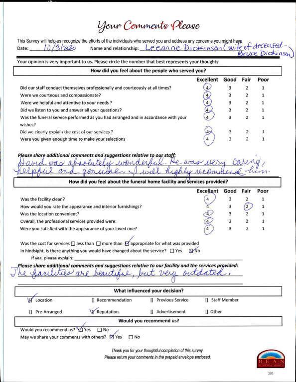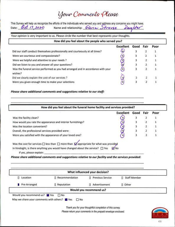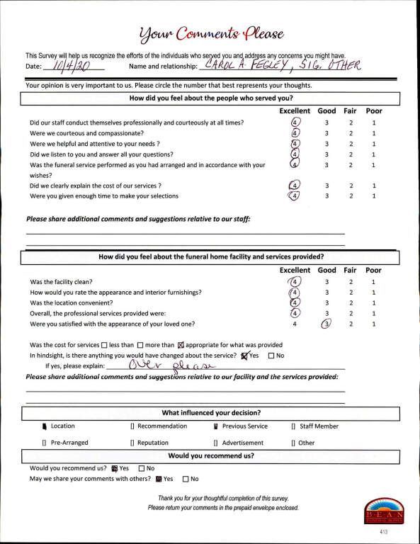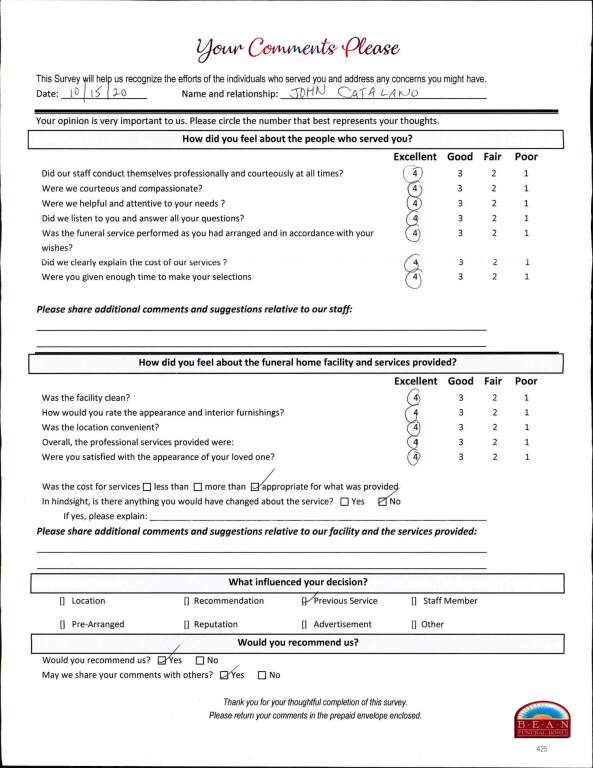 If we have served your family and you would like to share your thoughts, please write your own testimonial.
